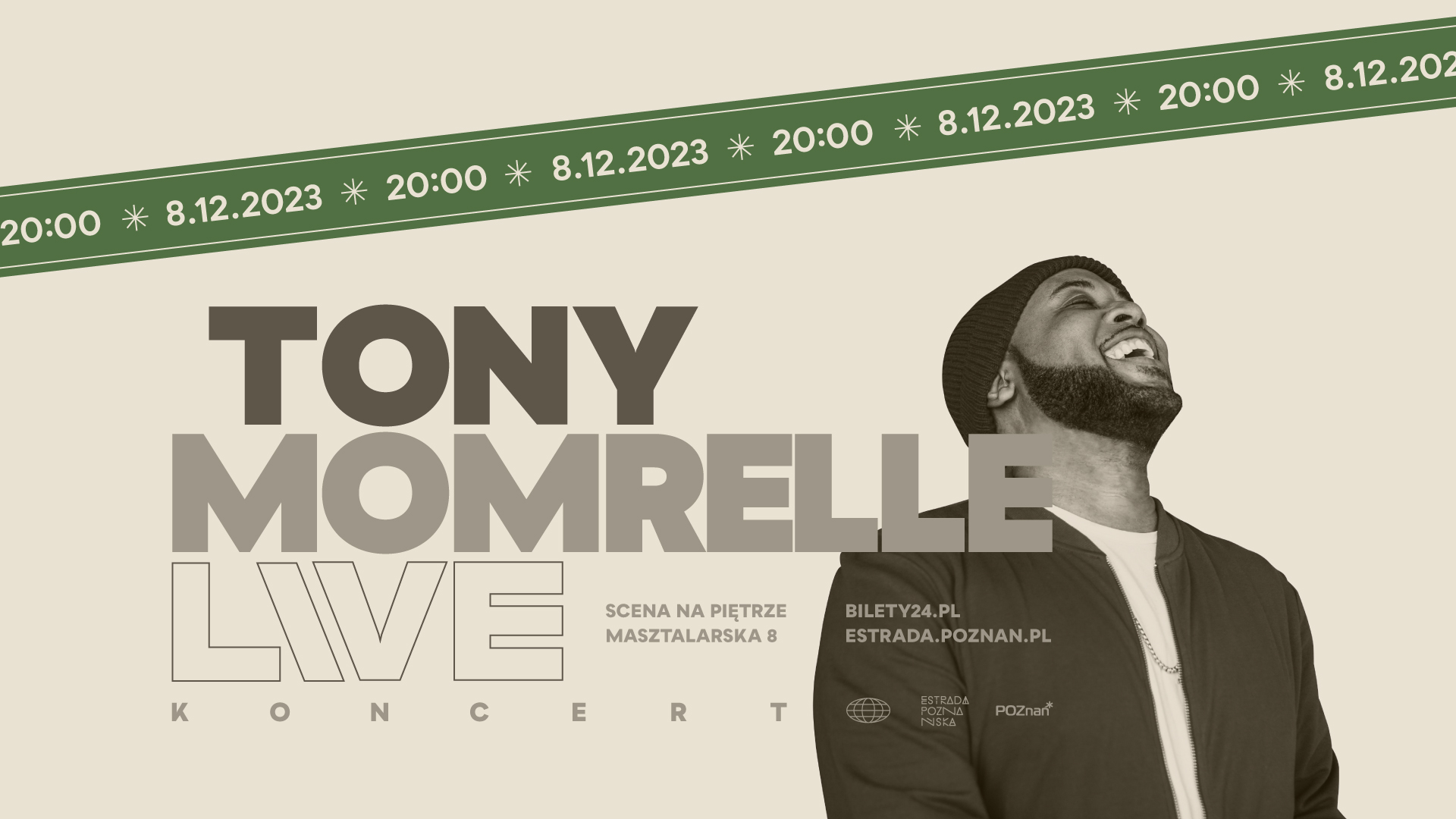 Tony Momrelle to jeden z najbardziej ekscytujących muzyków soulowych na współczesnej scenie. Magazyn „The Guardian” określił go mianem „Stevie Wondera XXI wieku”. Jego twórczość jest autorską interpretacją brytyjskiego soulu. Czerpiąc z najlepszych tradycji gatunku artysta zaproponował jego własną, oryginalną odmianę. W wykonaniu Momrelle’a to porywający miks ejtisowych syntezatorów, jazzowych klawiszy, klasycznego fortepianu i niezwykle żarliwego wokalu. Optymizm tej muzyki w połączeniu z jej ciepłem i chwytliwością jest zaraźliwy. Będziemy się mogli o tym przekonać podczas jego grudniowego występu w Scenie na Piętrze. Podczas koncertu nie zabraknie też utworów świątecznych!