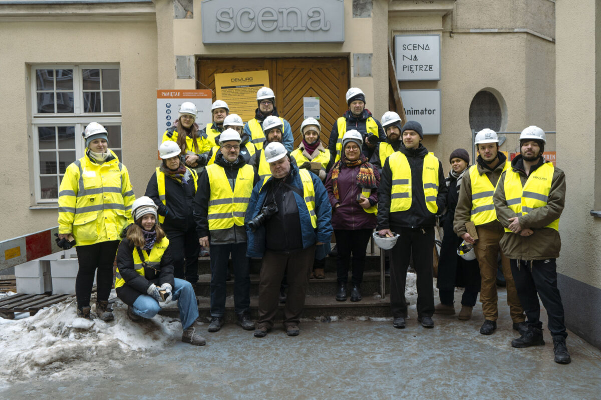 Goszczący u nas odkrywcy niejedno już widzieli! Kameralna grupa zajmująca się dokumentowaniem miasta, architektury i procesów zmian w przestrzeni weszła na plac budowy, doświadczając wyjątkowego, przejściowego stanu obiektu. Oczywiście pod kontrolą i zgodnie z zasadami bezpieczeństwa.